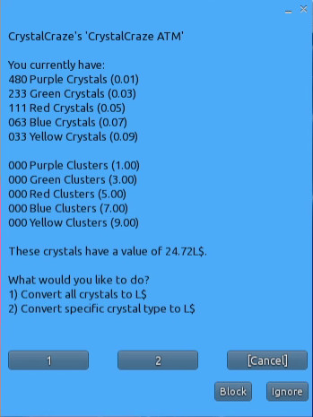 3. 크리스탈을 린든으로 교환하기 위해 [1]버튼을 누른다.