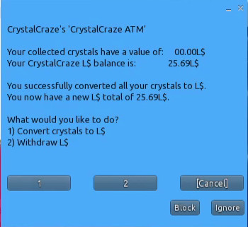 - 남아있던 0.97린든과 크리스탈 교환금액 24.72린든이 더해져서 내 ATM 계좌는 25.69린든이 되었다.