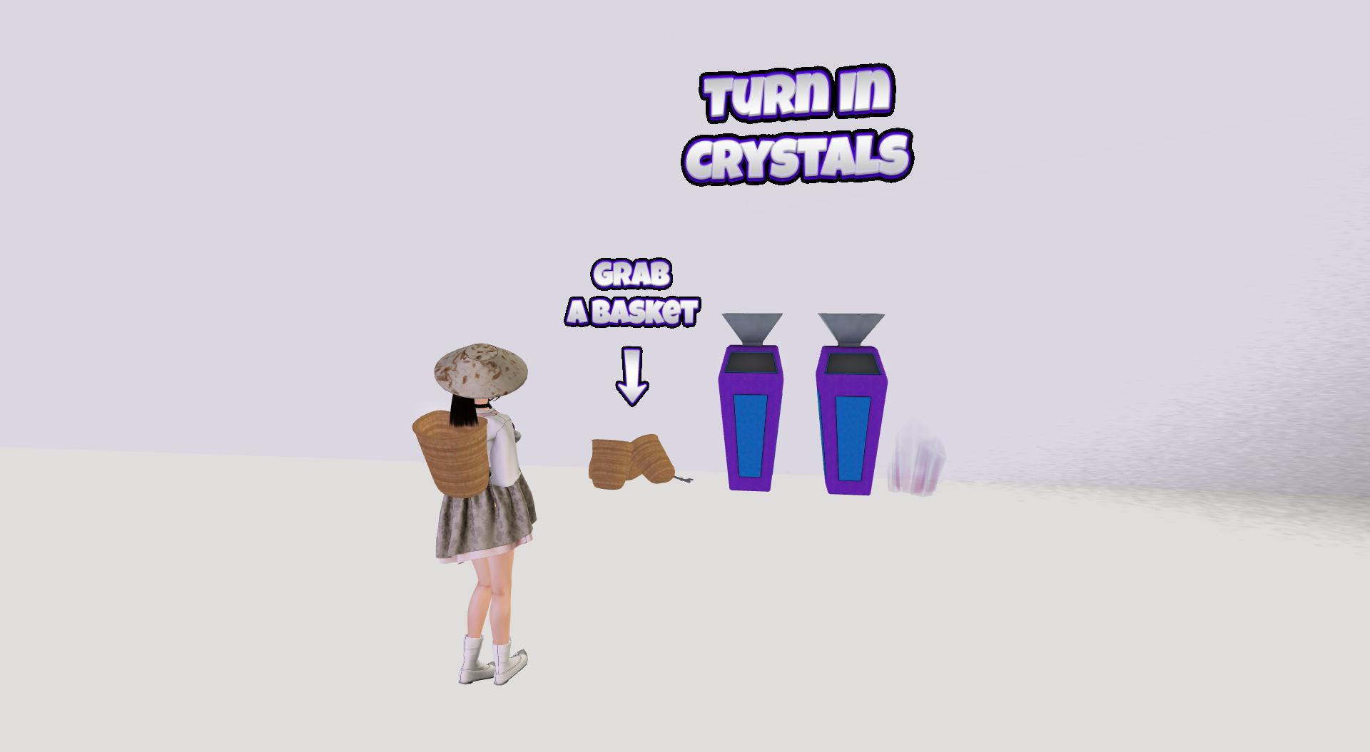 바닥에 있는 크리스탈 하나를 클릭하니 역시나 HQ(헤드쿼터: 본사 사무실)에서 바구니와 허드를 지급받고 시작하라는 안내가 나온다.
